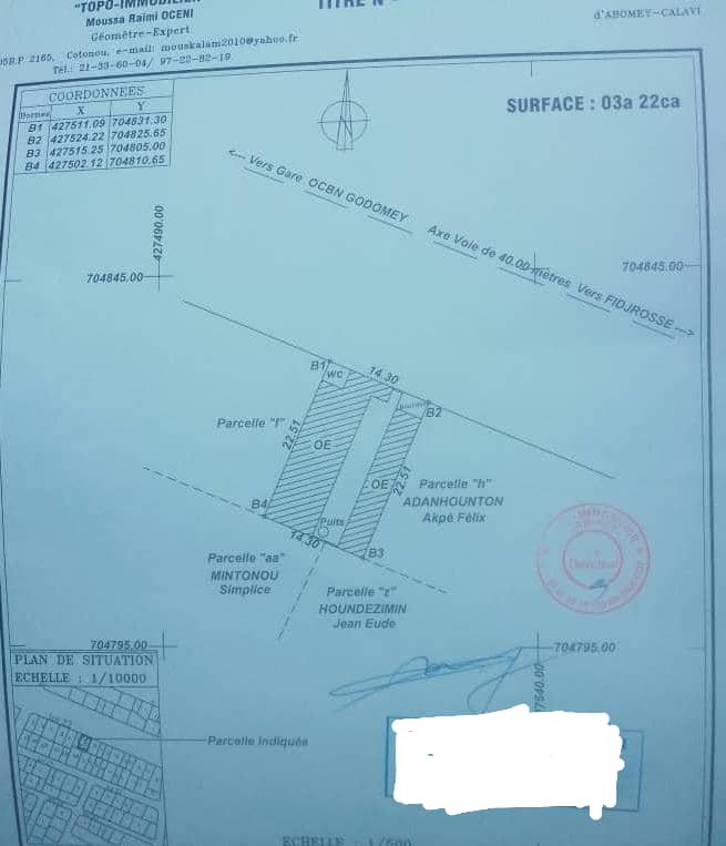 DOCUMENTS : *Reçu de recasement et titre foncier en cours chez le notaire*